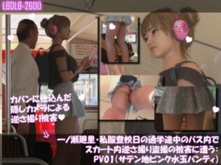 3DCG 一ノ瀬廻里・私服登校日の通学途中のバス内でスカート内逆さ撮り盗撮の被害に遭う:PV01(サテン地ピンク水玉パンティ)【同人エロ漫画】d_730832